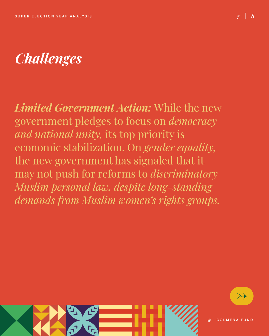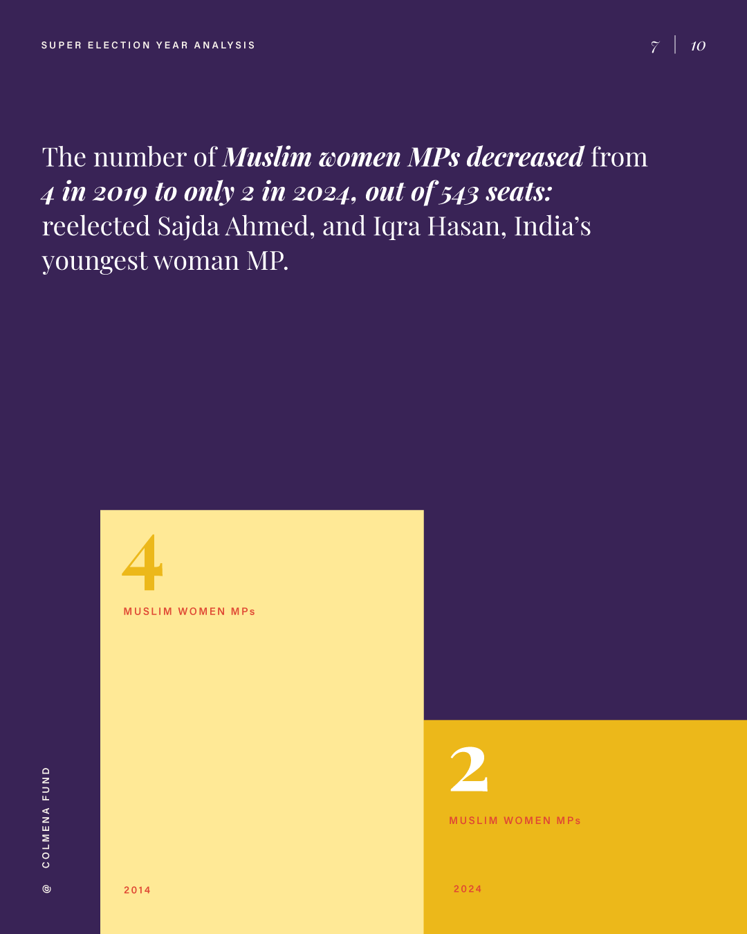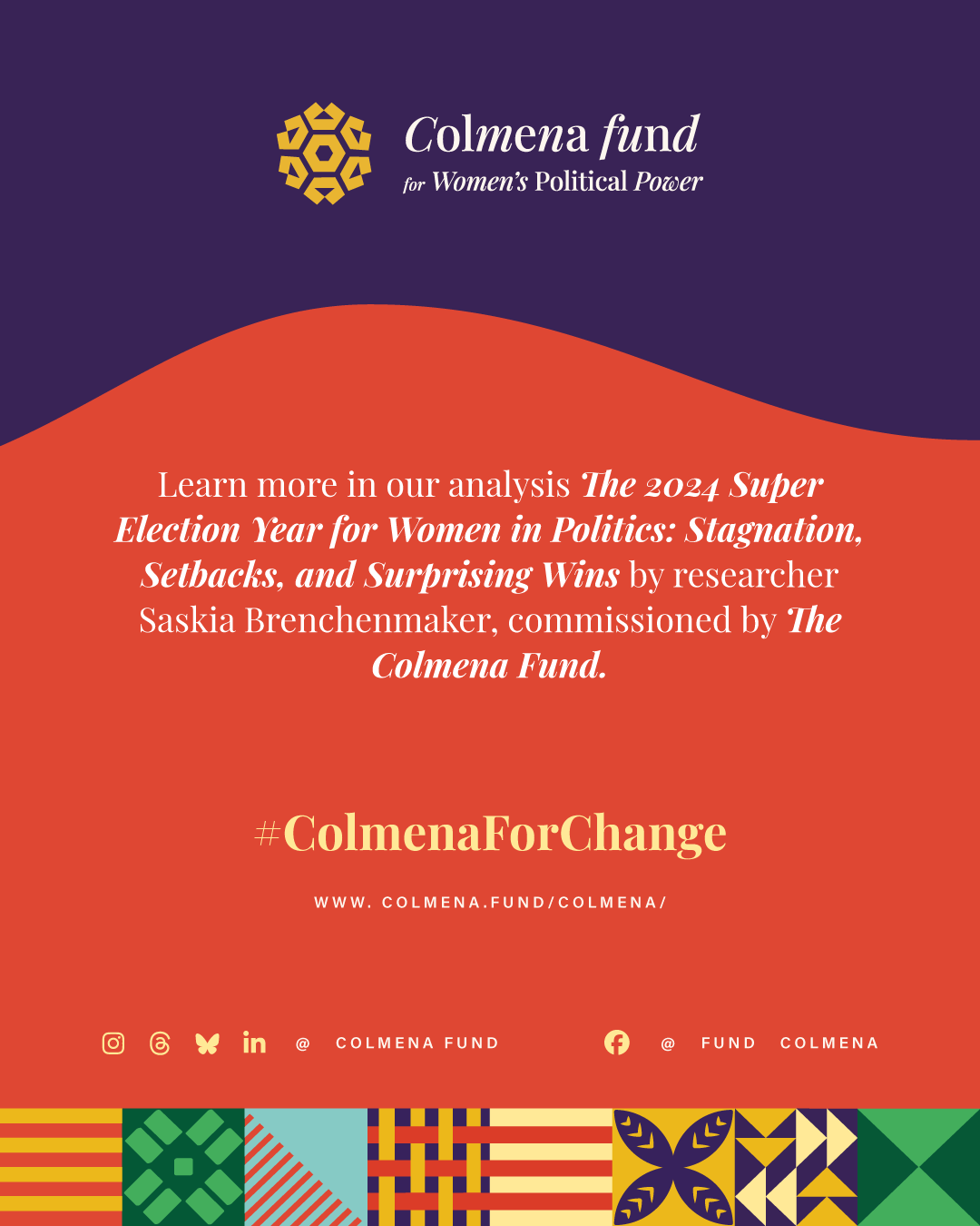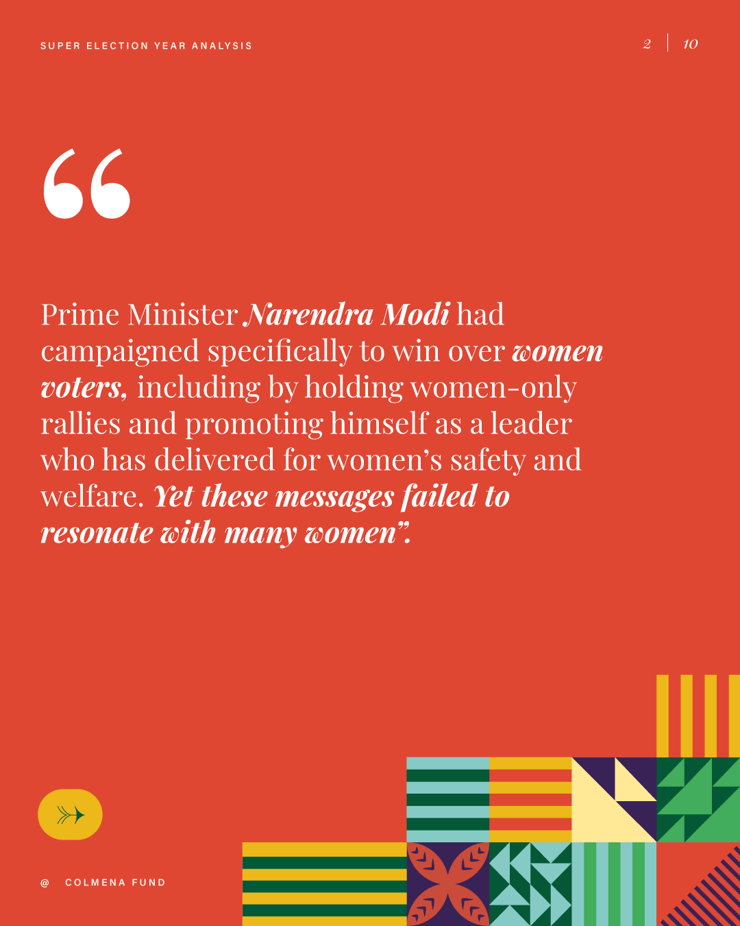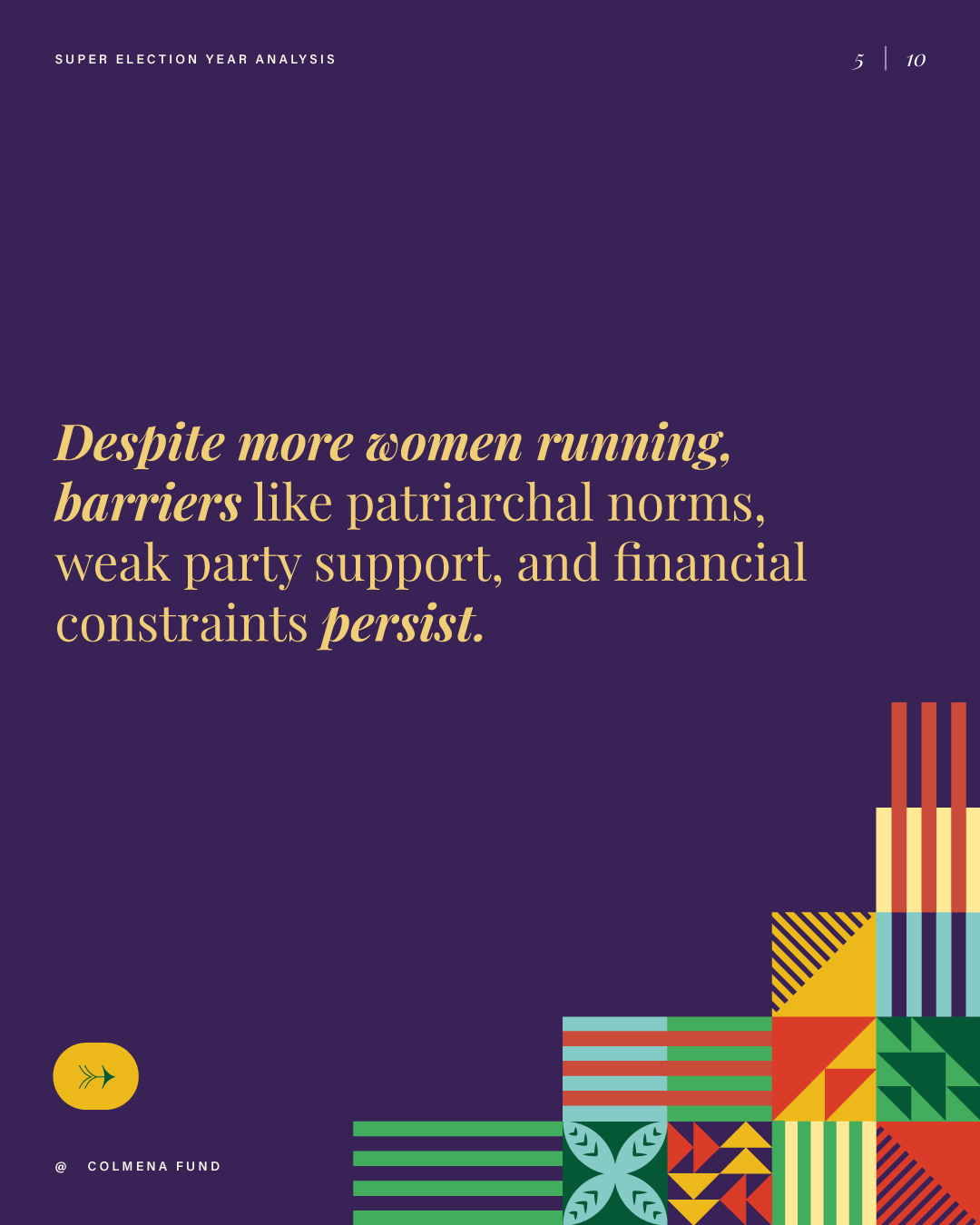 This report analyzes advances and setbacks in women’s political representation in 2024, building on the mid-year assessment published by the Colmena Fund for Women’s Political Power in October. It begins by examining global trend lines in women’s parliamentary and executive representation, highlighting both progress and backsliding. It then turns to four countries that held significant elections over the past year and interrogates their impact on women’s political power: the Dominican Republic, India, South Africa, and Sri Lanka. To close, the analysis draws attention to several broader themes that emerged from the electoral contests of the past year.